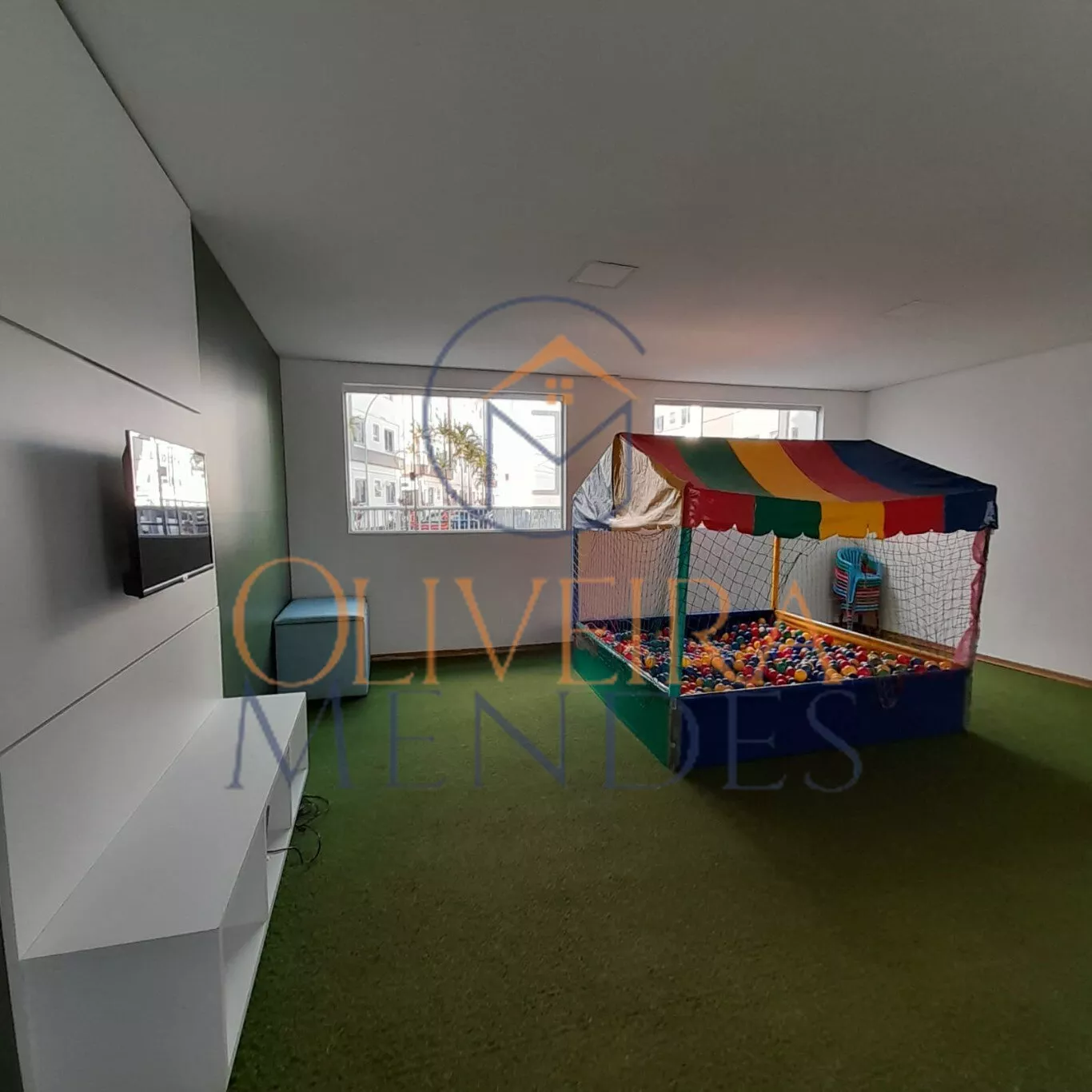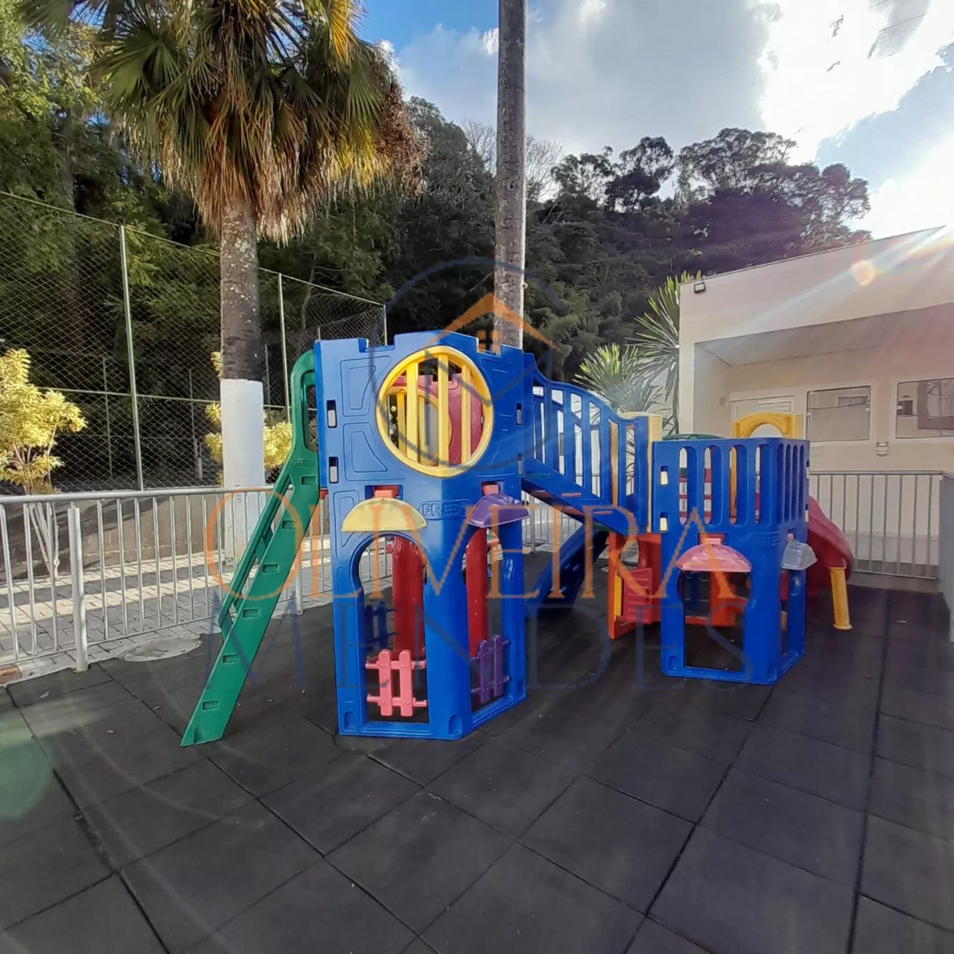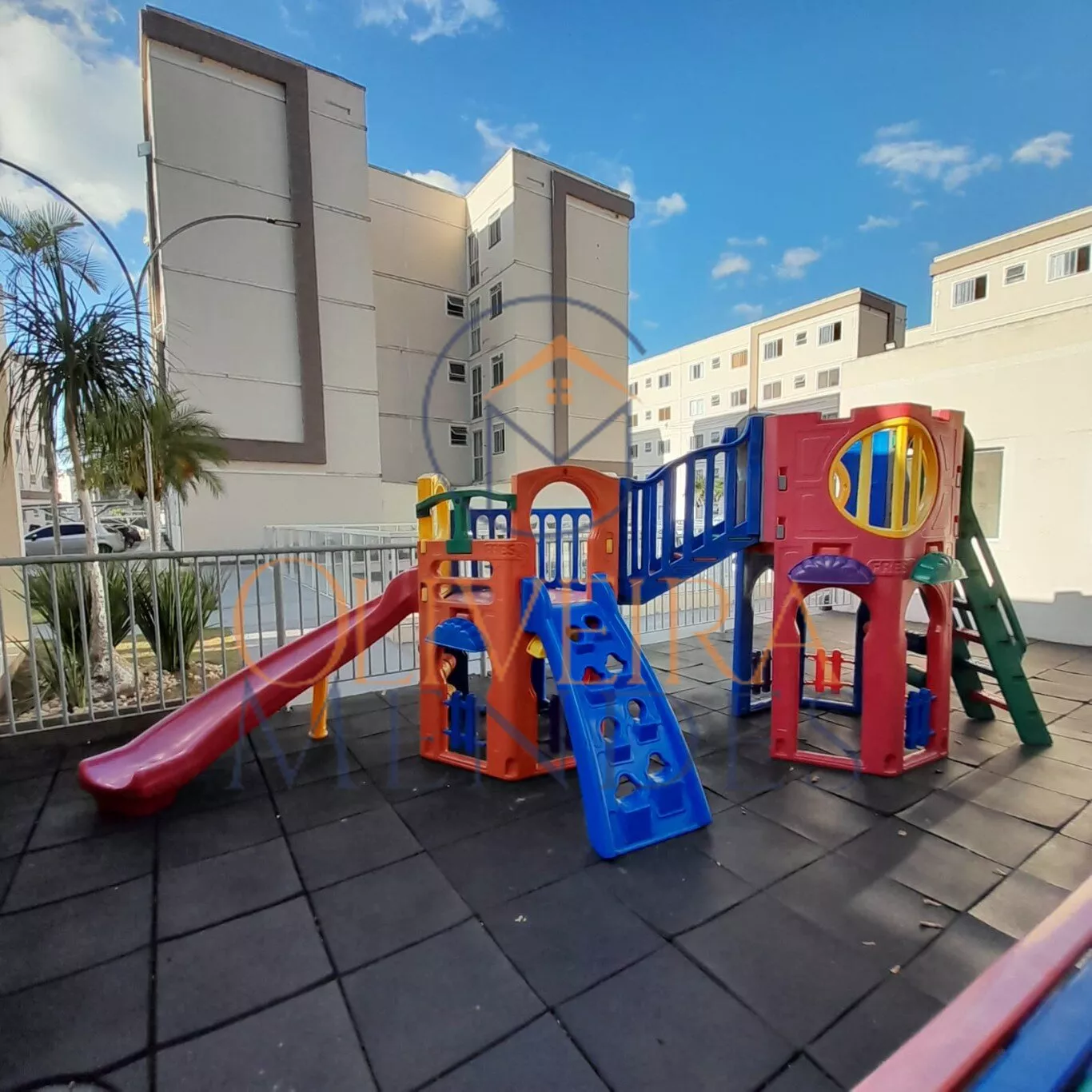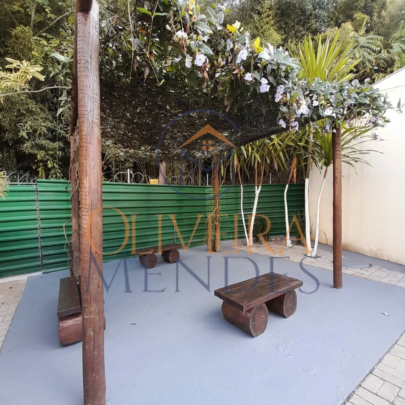O condomínio possui área verde de jardim, playground.