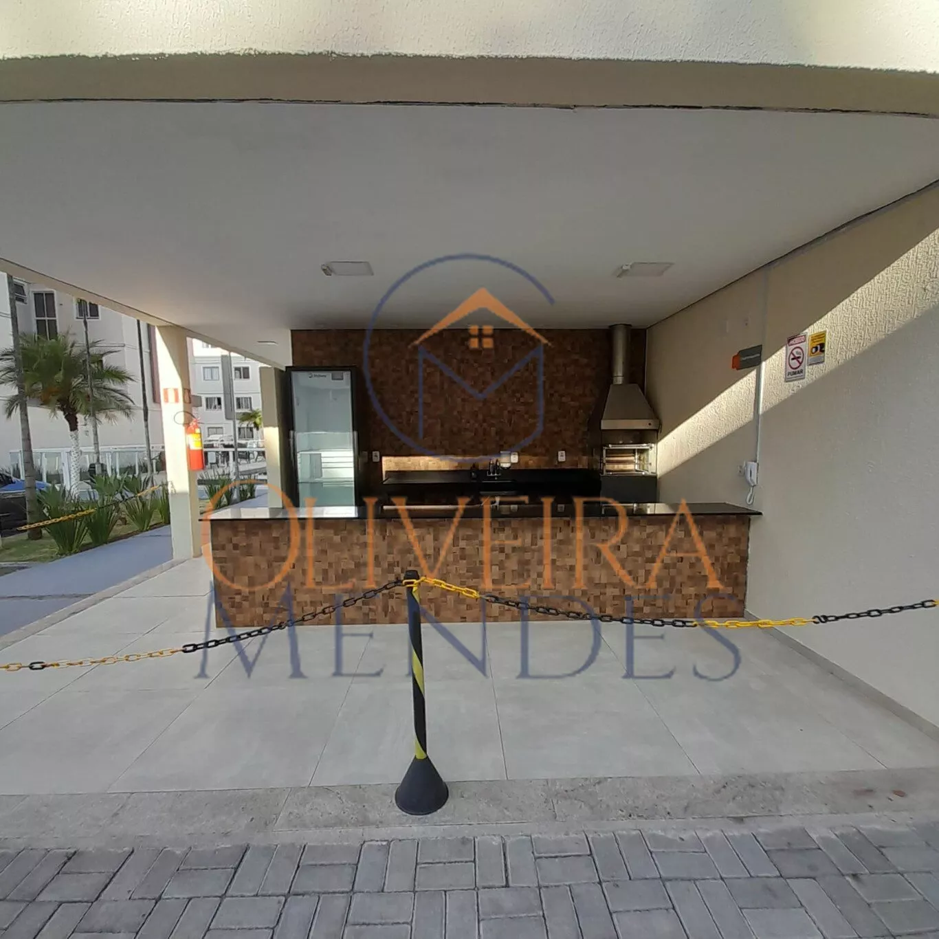 Condomínio protegido por grades.